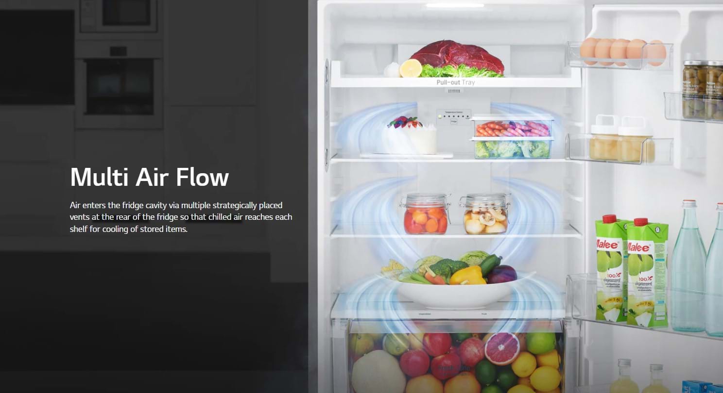 This is the 332L Top Mount Refrigerator from LG, it comes with DoorCooling+ technology and a range of smart features for fresh food preservation. The side air vents help cool the front of the fridge and the door basket area 35% faster than fridges without door cooling. The Smart Diagnosis functionality of this fridge allows you to self-diagnose your fridge using your smartphone helping you save time and money on unnecessary callouts. This LG has a 4-star energy rating meaning a more efficient unit and better electricity usage.