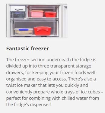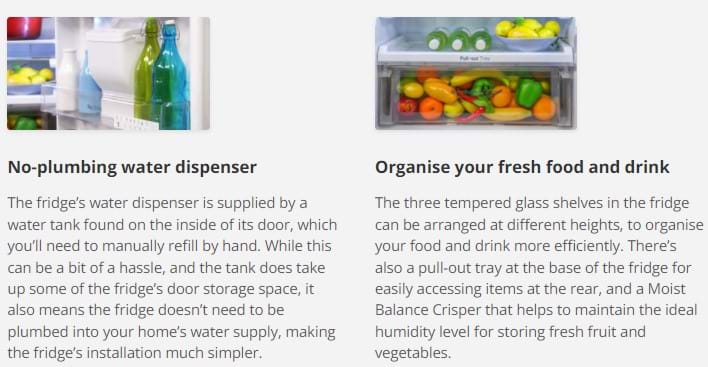 With 450L of volume, this LG fridge is suitable for a household of four or five people. The fridge on top gives you handy, eye-level access to fresh food, and the door-mounted water dispenser lets you enjoy a refreshing drink whenever you feel like it. Capping it off is the sleek design and stainless steel finish, which looks great in just about any style of kitchen.