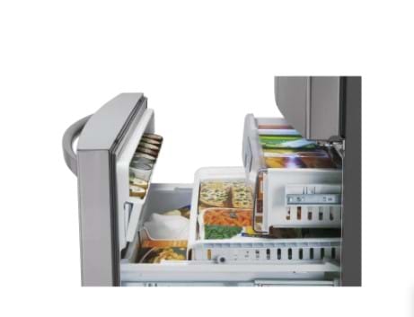 The 730 litre stainless steel french door from LG was designed to provide ultimate organisation. Easily find your favourite frozen items with the three-layered freezer. The door-in-door design lets you access your favourite items conveniently while reducing cold-air lose. Get continuously filtered water with the slim water & ice system, designed to fit taller containers while taking up less space. Keep your food fresher for longer with the temperature controlled drawers.