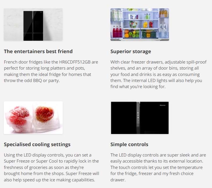 Welcome a new level of sophistication to your home with this beautiful French door fridge from Hisense. Available in black and other colour variations, this fridge will make a luxurious addition to any new or remodelled kitchen. Whether you have a family filled household, or you’re an entertainer at heart, this Hisense fridge will cater to your needs.