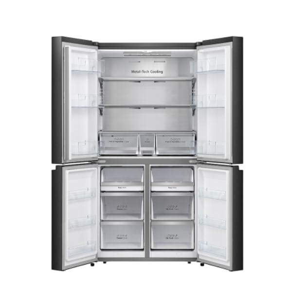 Open your kitchen to the 609 litre Hisense 4-door refrigerator, featuring its PureFlat design. The PureFlat door finish encapsulate true minimalist design, giving a timeless appearance and consistent feel to any new or remodeled kitchen. Featuring three separate compartments allow you to adjust temperature according to your needs. The convertible door can be converted from a fridge or a freezer, how good! To top it off the 609L French Door is engineered for efficiency with its Inverter Compressor Motor.