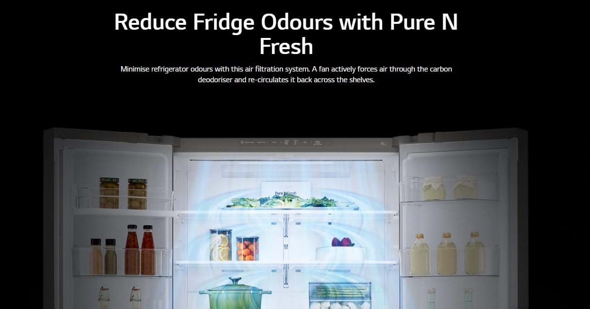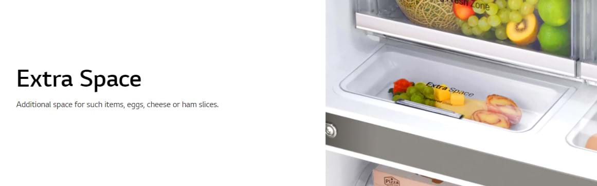 This French door fridge from LG provides a generous capacity, able to provide storage space for busy households and large families.