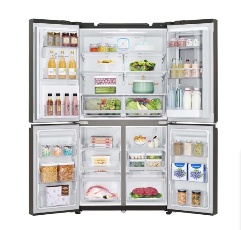 Retractable shelving and extra space make it easier to accommodate items of all shapes and sizes, from large platters to upright bottles. Control your fridge settings with ThinQ technology, easily adjust fridge and freezer temperature from the palm of your hand.