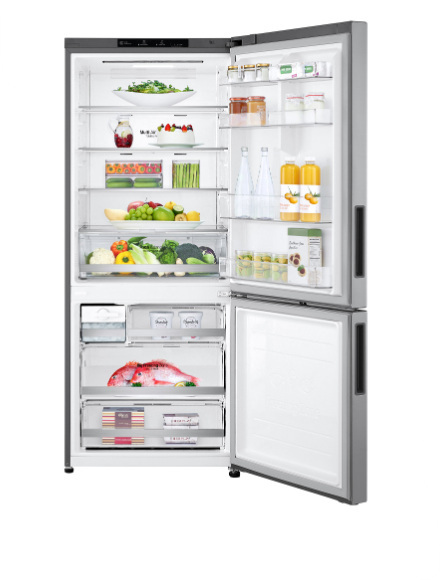 The GB455PL bottom mount fridge from LG will make a stylish addition to your home's kitchen, thanks to its anti-fingerprint shiny steel finish and recessed handles. It also makes efficient use of space, and keeps all of your food and drink nicely organised. The 4½ Star Energy rating will keep energy consumption levels low.