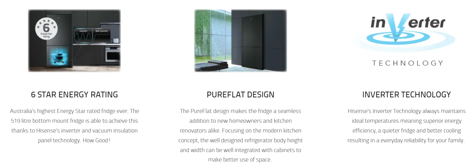 The all-new Hisense 519L Black Steel Bottom Mount Refrigerator is engineered for efficiency with Australia’s Highest Energy Star Rating Ever* of 6 Stars! Combined with its Inverter Compressor Motor and convenient Reversible Doors making it a perfect addition to your home. It’s packed with advanced performance features like a multi-function touch control panel, electronic temperature control, a Holiday Powersave function and more. The refrigerator’s easy-slide drawers, adjustable spill-proof glass shelves, large fruit and vegetable crisper, and even a twist icemaker provide unmatched convenience.
