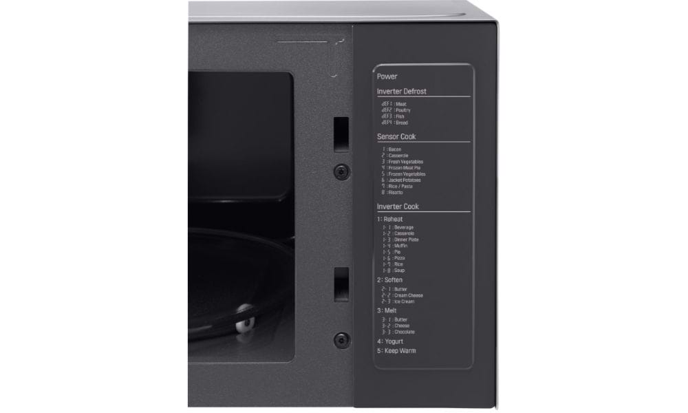 This LG 42L Inverter Microwave’s sleek minimalist design features a stainless steel finish and a touch control panel to perfectly blend in with your modern kitchen. With 22 different cook menus, 4 defrost options and 10 varying power levels of up to 1200watts, LG’s NeoChefTM technology promises to reheat and defrost 33% faster than your average microwave whilst maintaining evenly cooked foods to the core. Moreover, SGS confirms that LG’s Anti-Bacterial EasyCleanTM makes interior cleaning convenient with only a few wipes yet eliminating 99.99% of surface bacteria.