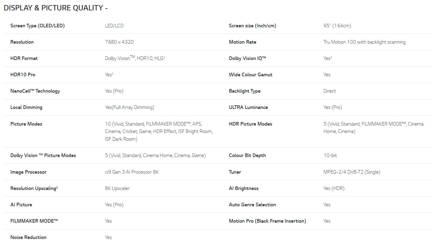 Real 8K NanoCell™: NANO Colour, NANO Black, NANO Bezel