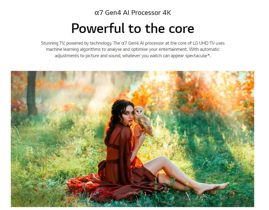 Powered by the Quad Core Processor 4K, you’ll get the most from your entertainment. This technology removes video noise and upscales low-resolution images, so you’ll always enjoy the best picture quality. Plus, for a true at-home cinematic experience, LG’s FILMMAKER MODE delivers your movie in the way the director intended it to be viewed.