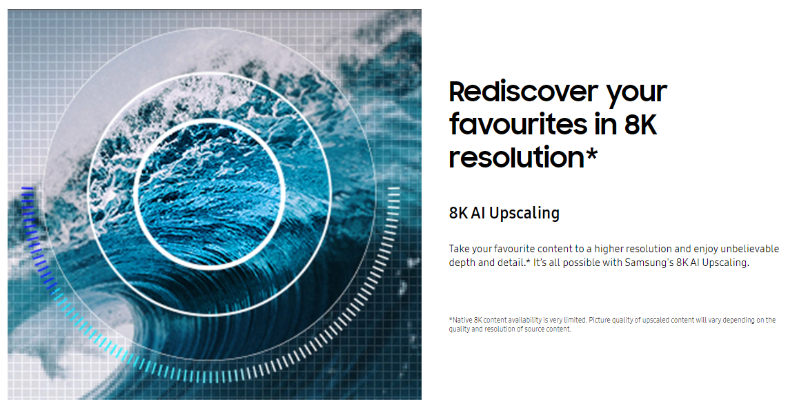 For non-native 8K content, the 8K AI Upscaling elevates all your favourite content to a higher resolution, delivering enhanced depth and detail. Of course, Samsung definitely hasn’t forgotten about contrast with the inclusion of Direct Full Array Elite. This advanced backlight control allows for precise adjustments to darkness and brightness levels, providing striking detail even in darker scenes.